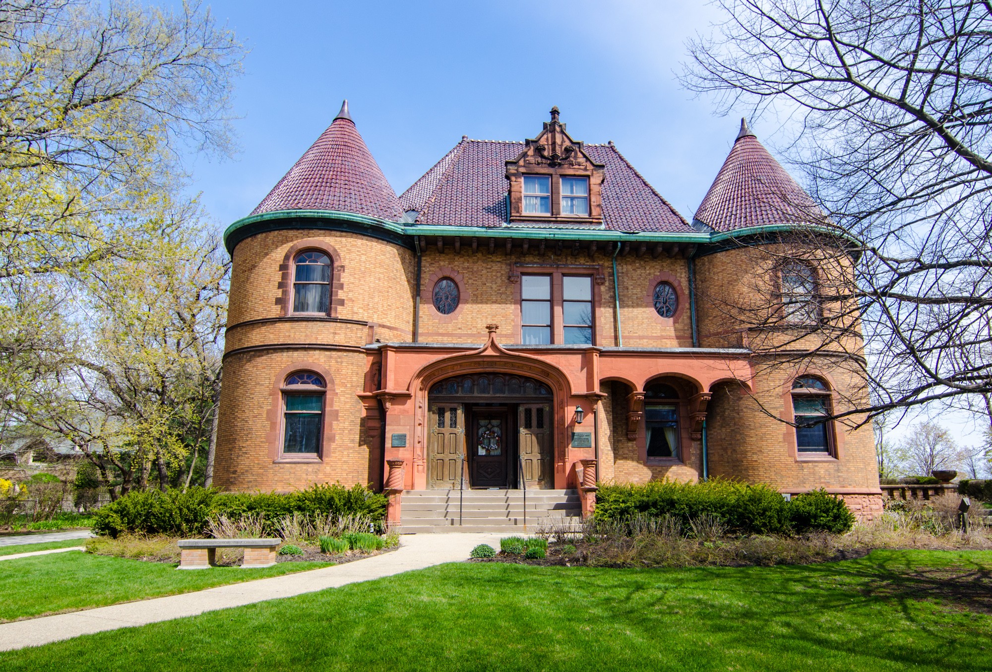 The Dawes House was built in 1894-5 on a two-acre lakeshore site. Designed in the style of French chateaux by Henry Edwards-Ficken of New York, the massive three-and-a- half story structure has twenty-five rooms, six bedrooms, seven bathrooms and eleven fireplaces. The Evanston History Center, located in the historic Charles Gates Dawes House, strives to capture and teach Evanston’s rich history.
