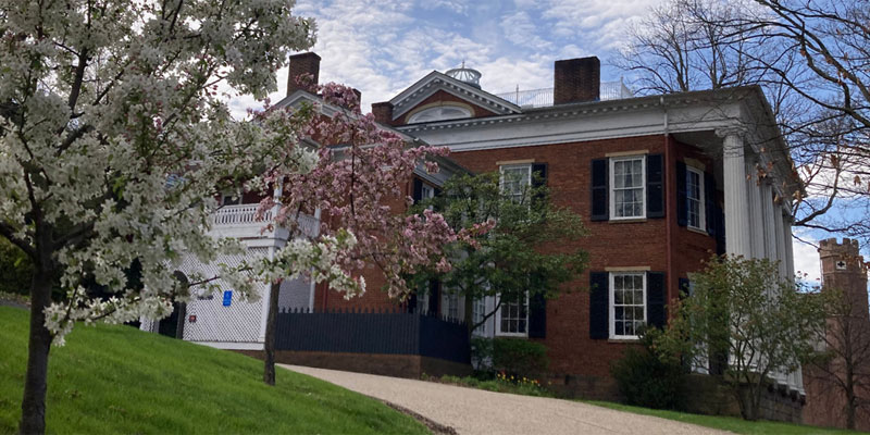 The 1832 Federal style home displays period furnishings and a doll and toy collection.