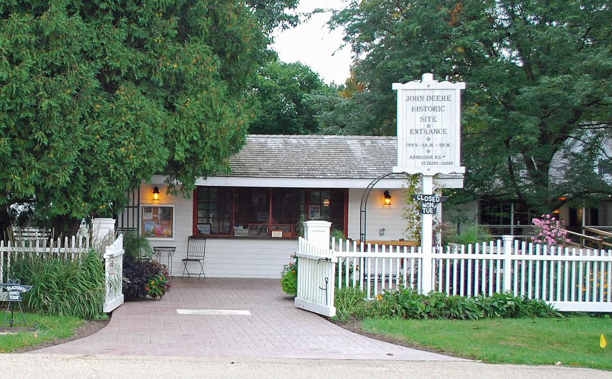 In 1836, John Deere, a blacksmith recently transplanted from Vermont, set up shop in the small Rock River town of Grand Detour, Illinois. The John Deere Historic Site features the home John Deere built, a gift shop, and an archaeological exhibit that shows the site of John Deere's original blacksmith shop.