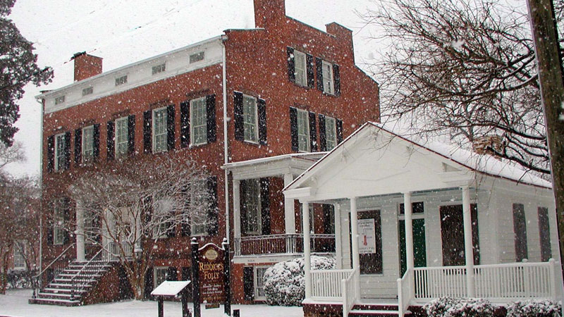 This most impressive structure on Main Street in Suffolk features striking architectural details. The five frieze band windows across the front of the house are rarely seen in eastern Virginia. The front of the mansion is bricked in Flemish bond, and double chimneys rise from both ends of the stately historic landmark. Slender columns of the Greek Revival period frame the main entrance. The interior showcases intricately carved moldings and elaborate ceiling medallions throughout the house.